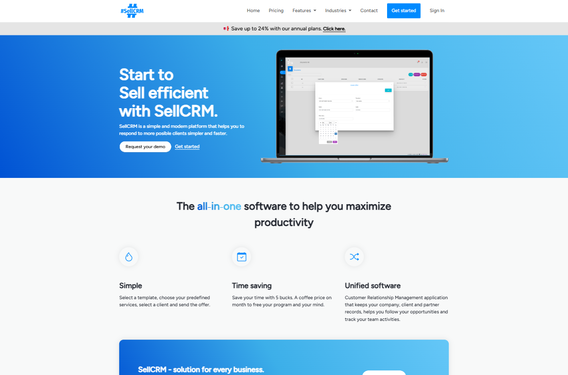 SellCRM is a modern web platform designed to facilitate fast and efficient communication management with potential clients. The solution provides companies with an intuitive tool that simplifies sales processes, optimizes response time, and helps increase conversion rates.