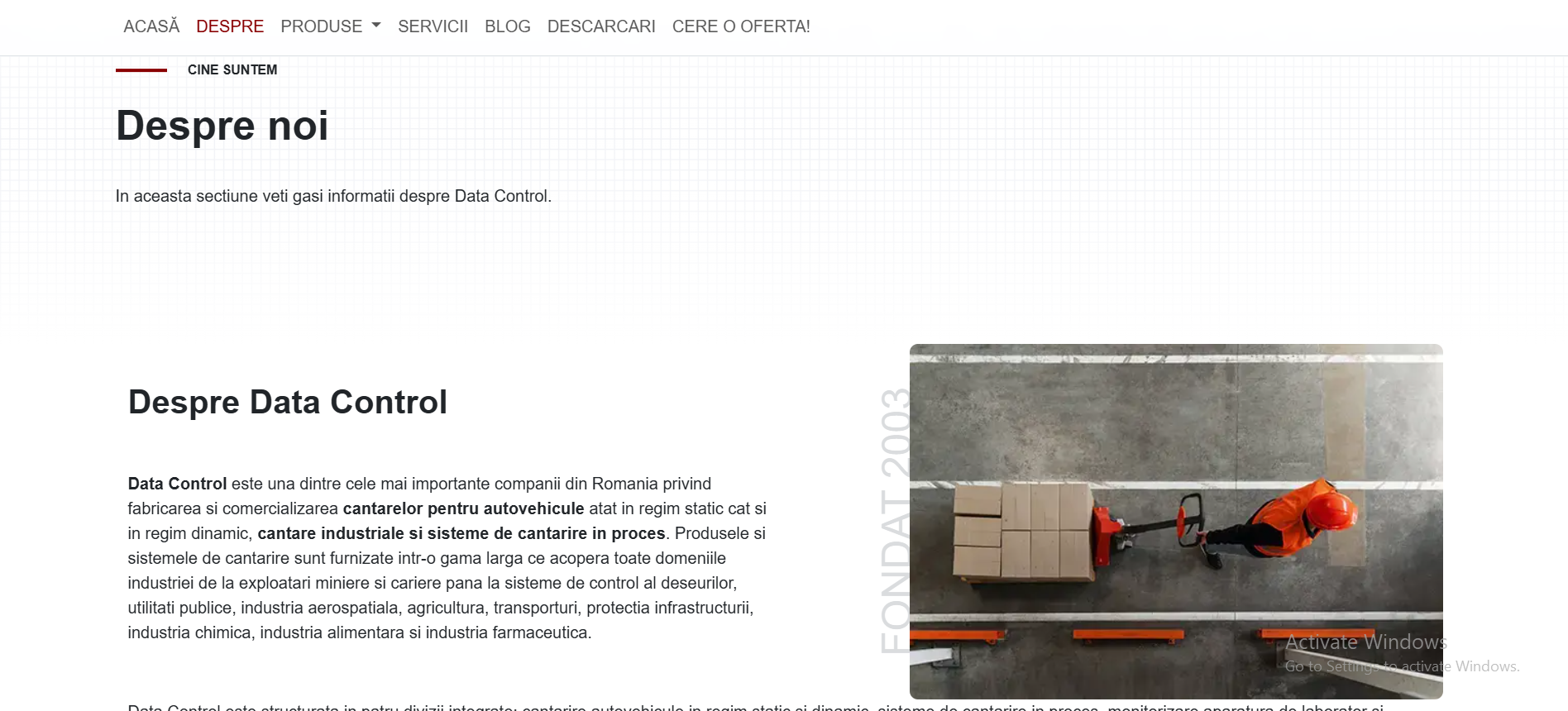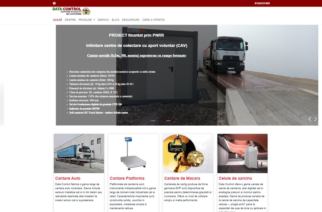 Data Control is one of the leading companies in Romania specialized in the manufacturing and commercialization of vehicle weighing systems, both static and dynamic, as well as industrial scales and in-process weighing systems.