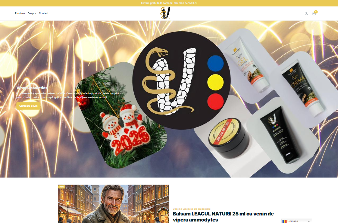 Viper Cosmetics is an eCommerce platform based in Romania, specializing in high-quality cosmetics that combine modern science with the power of nature. Natural viper venom – a revolutionary ingredient recognized for its anti-aging and skin rejuvenation effects – represents the brand’s core innovation.