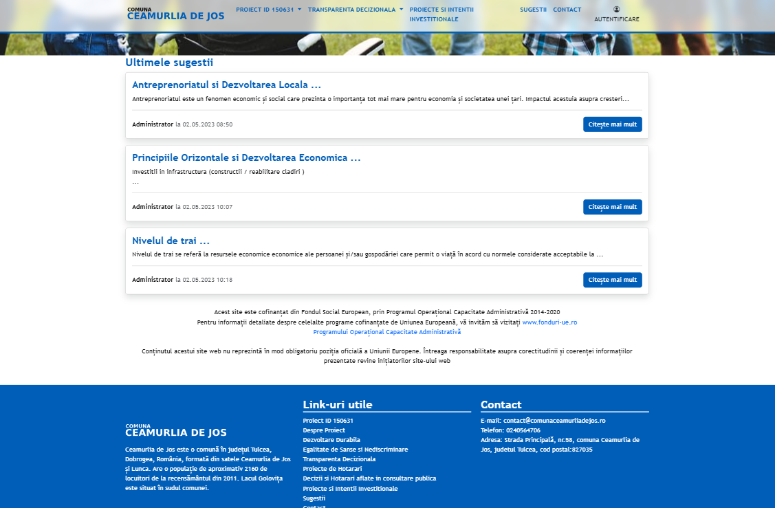 The Comuna Ceamurlia de Jos project focuses on implementing a modern digital system that optimizes citizen-oriented administrative processes. The online platform supports decision-making transparency and public participation, contributing to improved service quality within the local administration and fostering community development.
