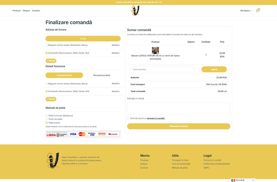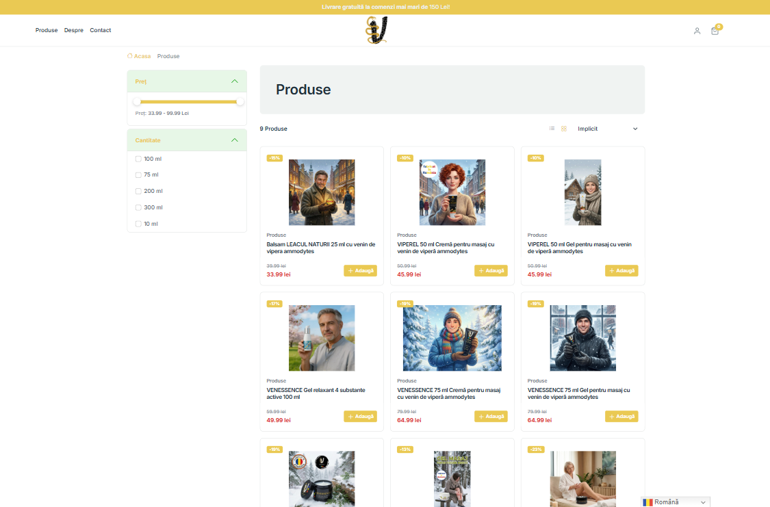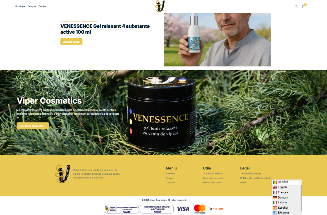 Viper Cosmetics is an eCommerce platform based in Romania, specializing in high-quality cosmetics that combine modern science with the power of nature. Natural viper venom – a revolutionary ingredient recognized for its anti-aging and skin rejuvenation effects – represents the brand’s core innovation.